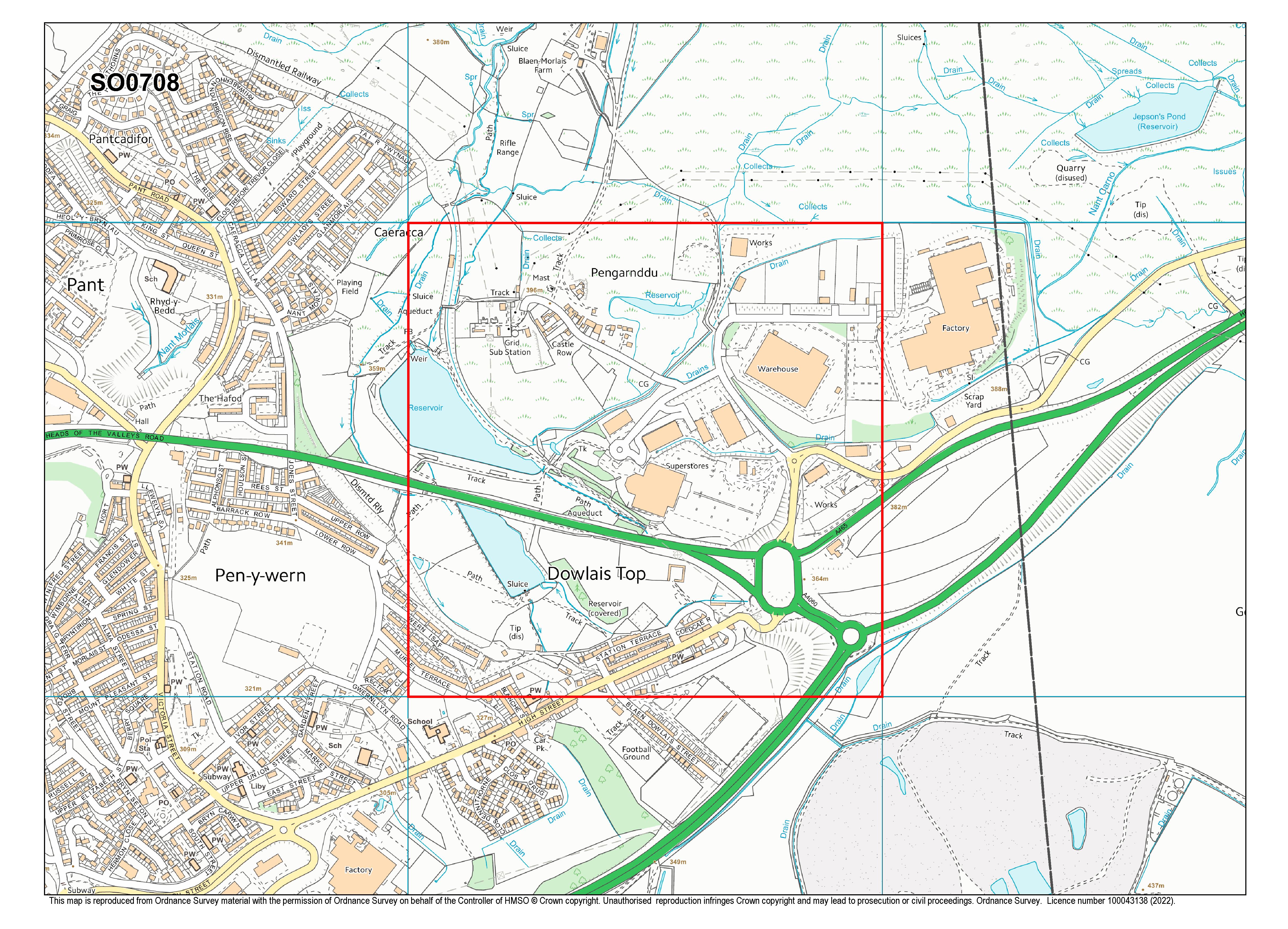 Located near Dowlais in Merthyr Tydfil, this square has been selected as it contains zero True Bug (Hemiptera) records. There are 535 non-sensitive species recorded overall, which can be viewed on Aderyn. This square contains a reservoir, upland area plus housing and shopping area. The square is crossed by roads and several rights of way.