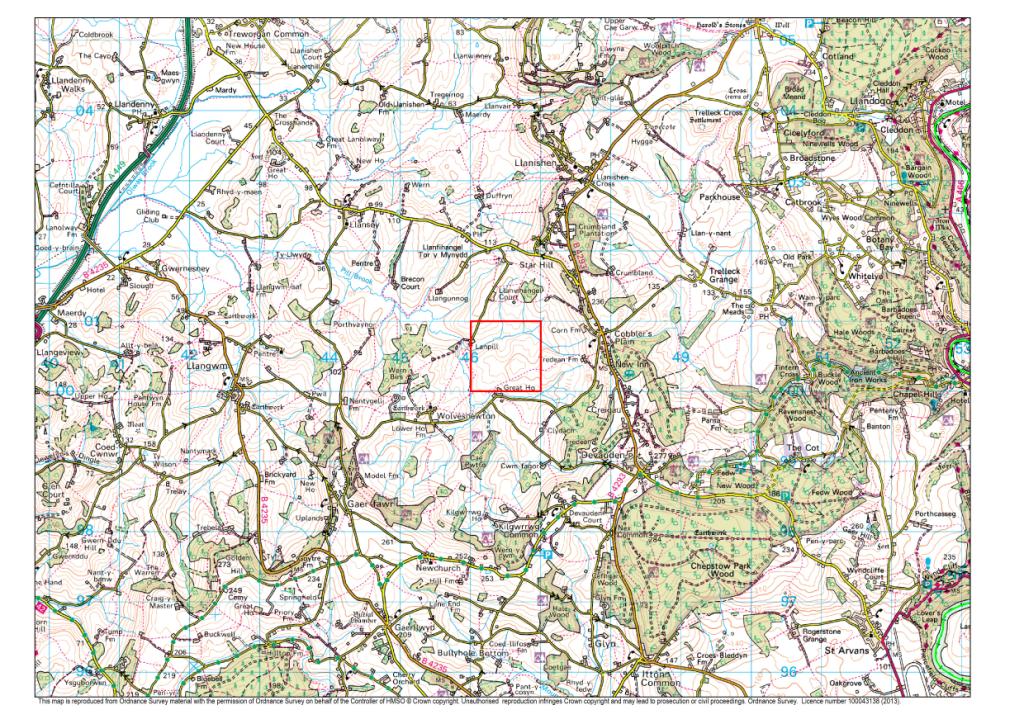 This square is in Monmouthshire, near Devauden and contains zero records. Please see below files showing the square on OS10 and OS50 scale maps. There is a right of way clipping the south-east corner, and there are a few woodlands nearby, so this could perhaps be incorporated into a nice autumnal walk.