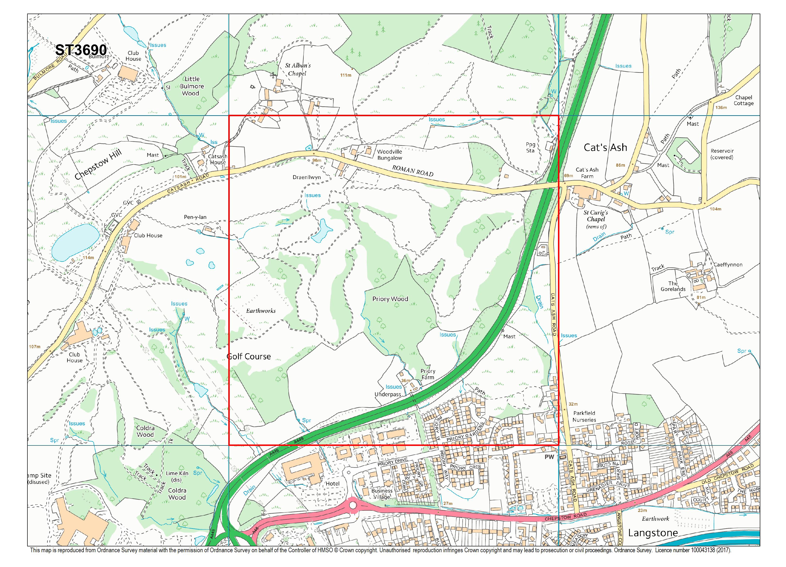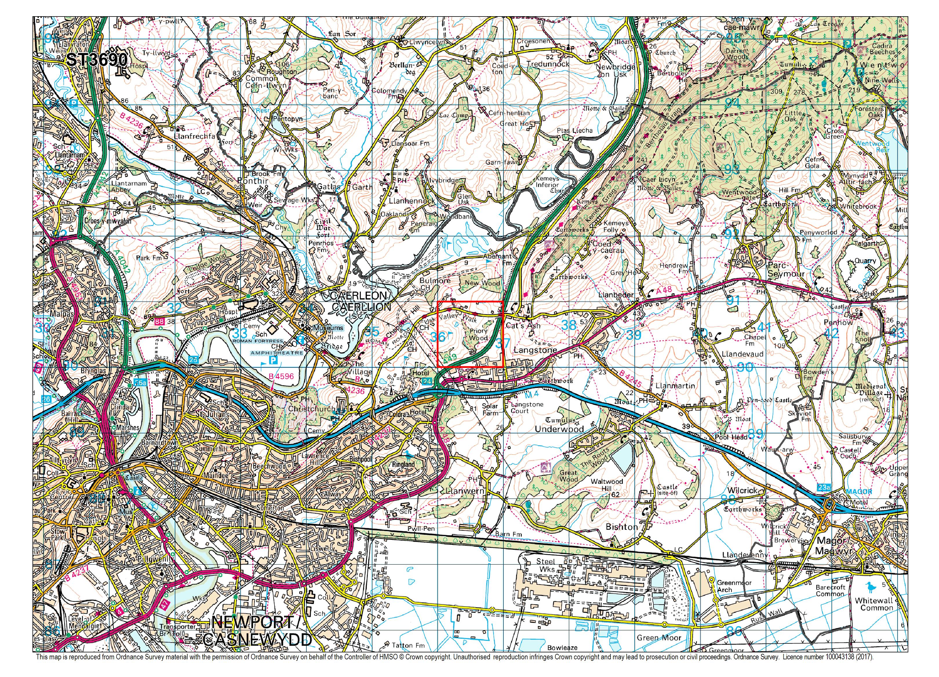 Located west of the A449, this square consists of a golf course and woodland, with a some rights of way running through it - including part of the Usk Valley Walk.