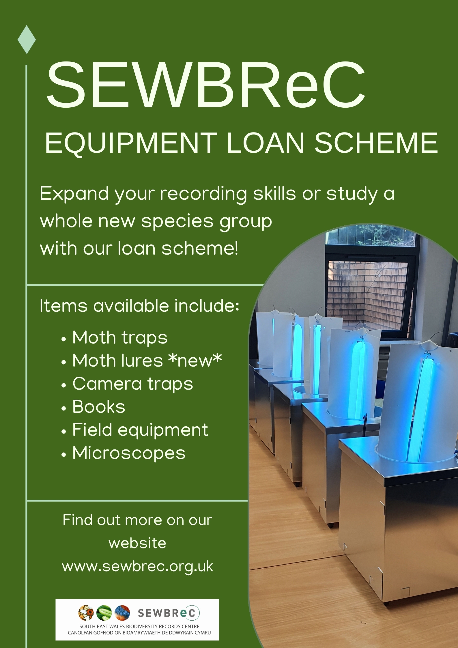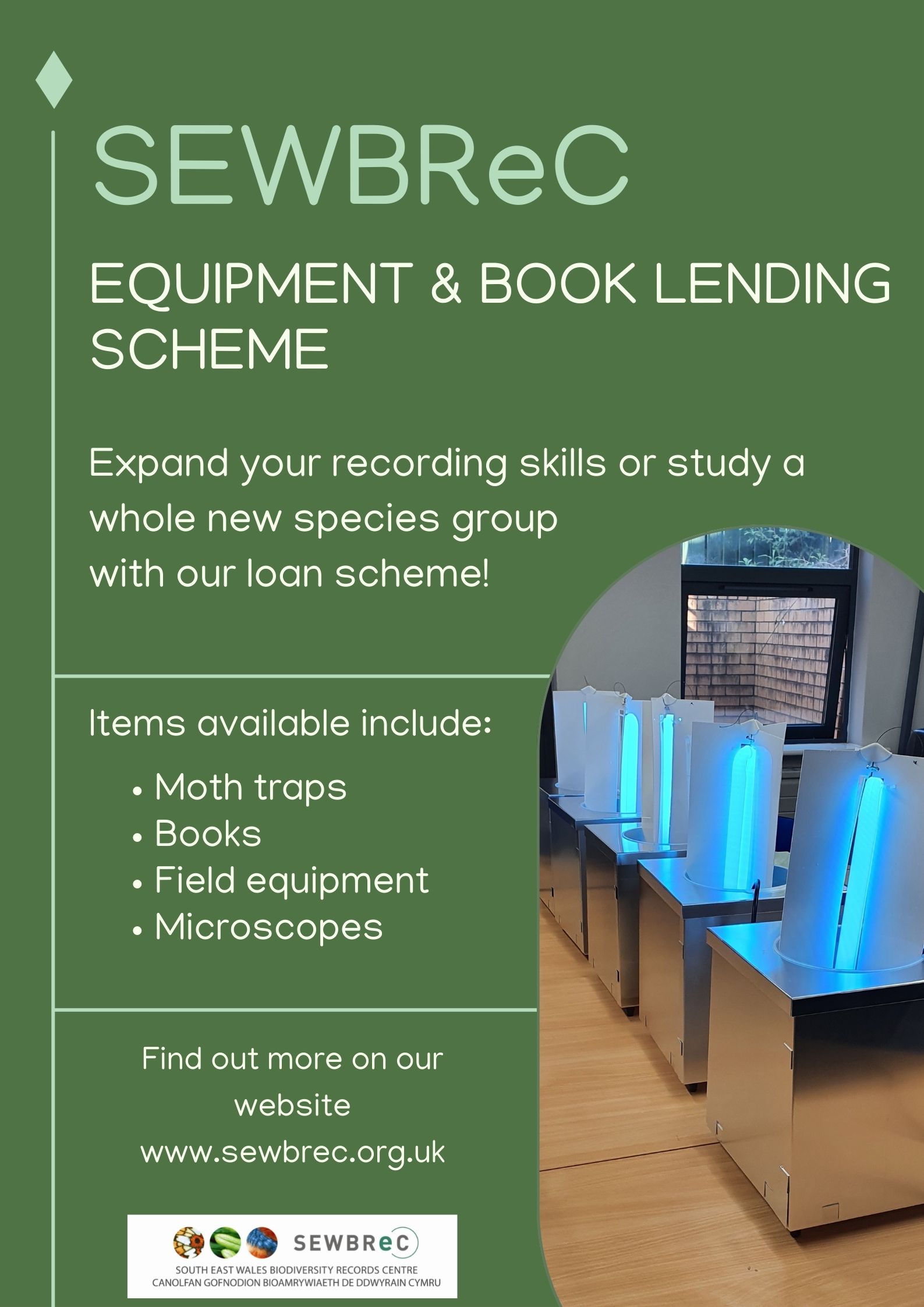 SEWBReC has books and equipment which are available for Recorders to use at our offices in Talbot Green, or to borrow for limited periods of time. We generally loan out items for a month at a time (2 weeks for Moth Lures), but will adjust this to circumstances.