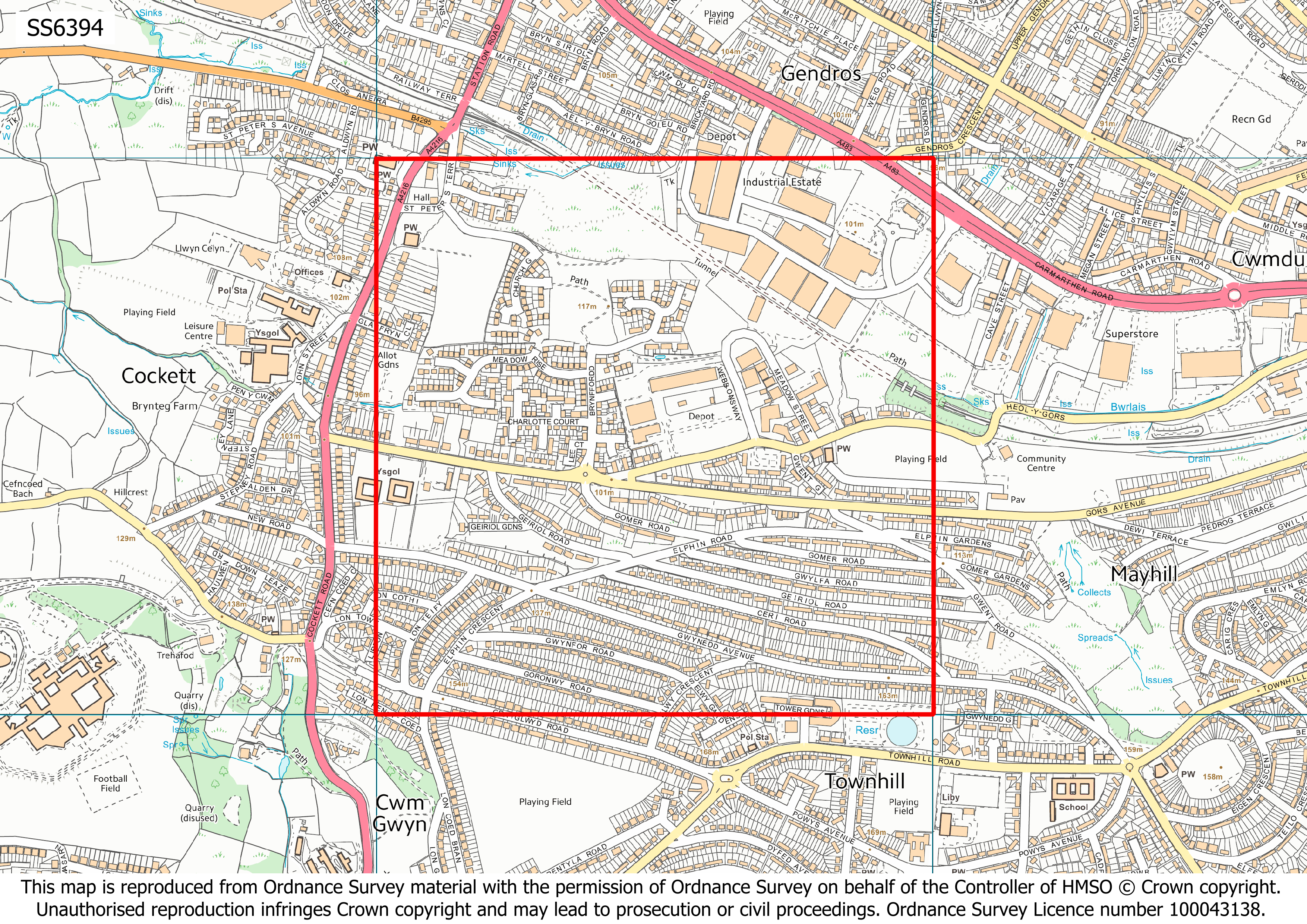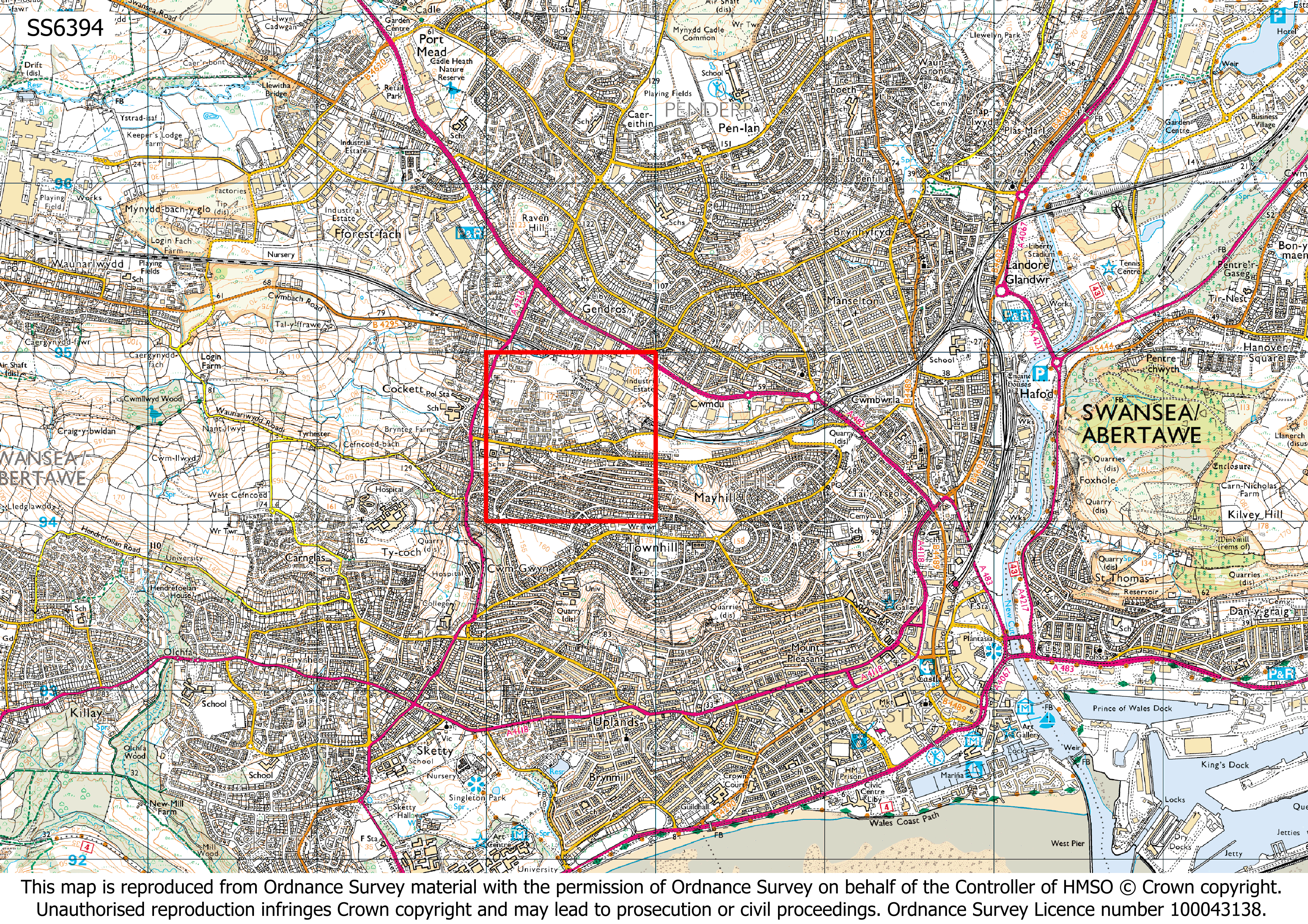 Located in Swansea, this square has been selected as it contains zero Fern records. There are 115 non-sensitive species previously recorded within the square, a list of these species can be viewed on Aderyn (link below). The square includes housing, parks and an industrial estate, with several roads and paths running through it.