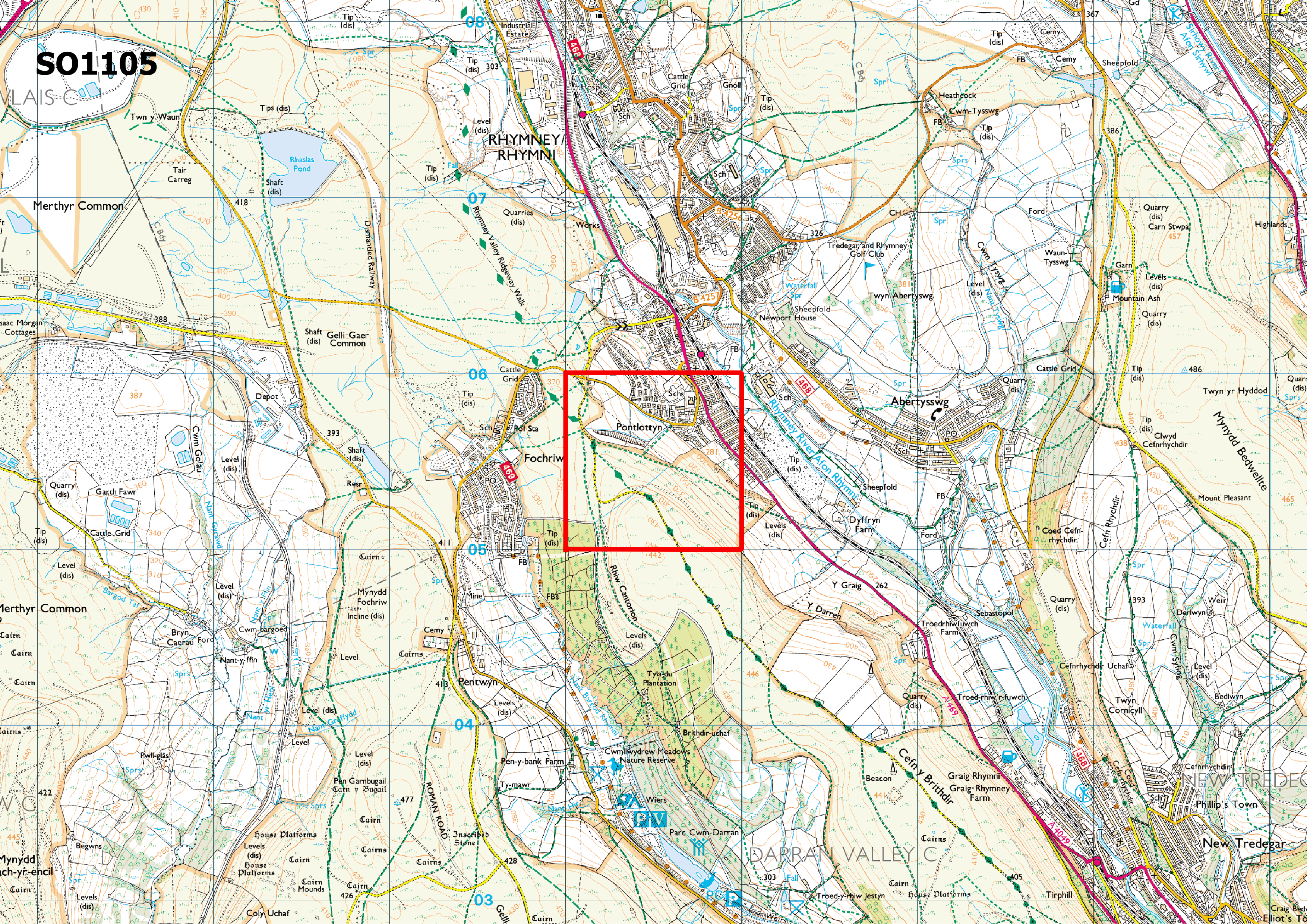 Located in Pontlottyn, Caerphilly, this square has been selected as it contains zero Plant records. There are 20 non-sensitive species previously recorded within the square, a list of these species can be viewed on Aderyn (link below). The square includes upland common and housing, with several lanes and rights of way running through it, including the Rhymney Valley Ridgeway Walk.
