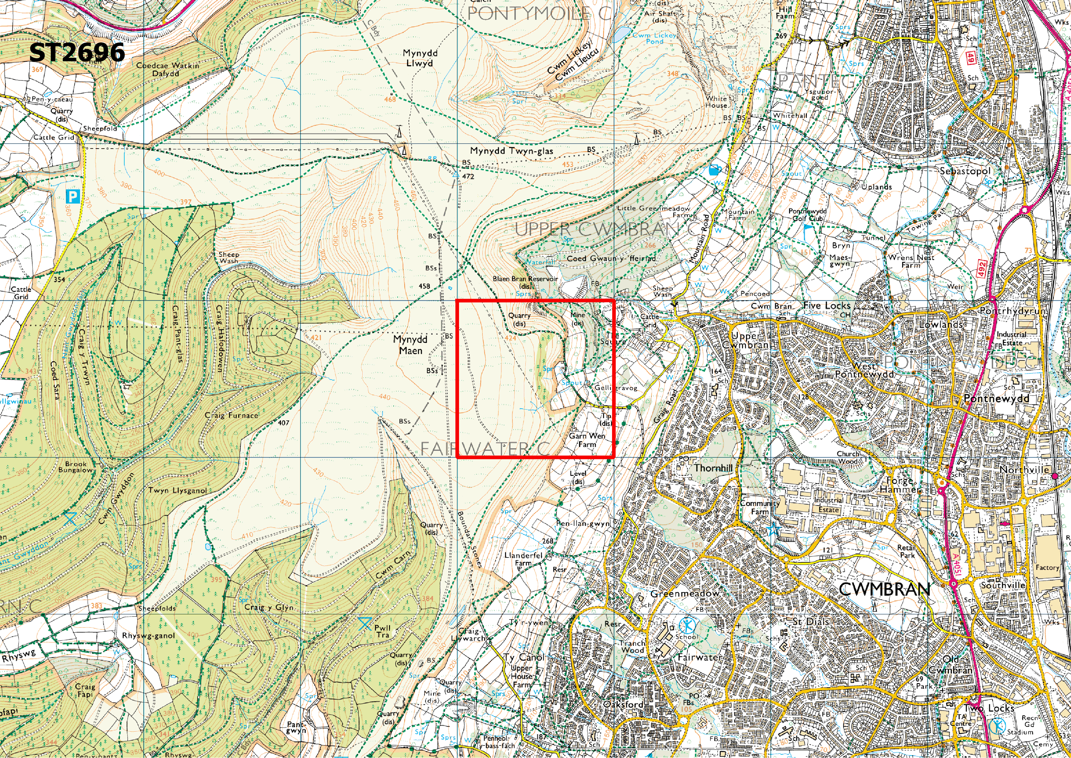 Located near Cwmbran in Torfaen, this square has been selected as it contains zero Hymenoptera records. There are 196 non-sensitive species previously recorded within the square, a list of these species can be viewed on Aderyn (link below). The square includes common land and Blaen Bran Woodland. There are several rights of way running through it.